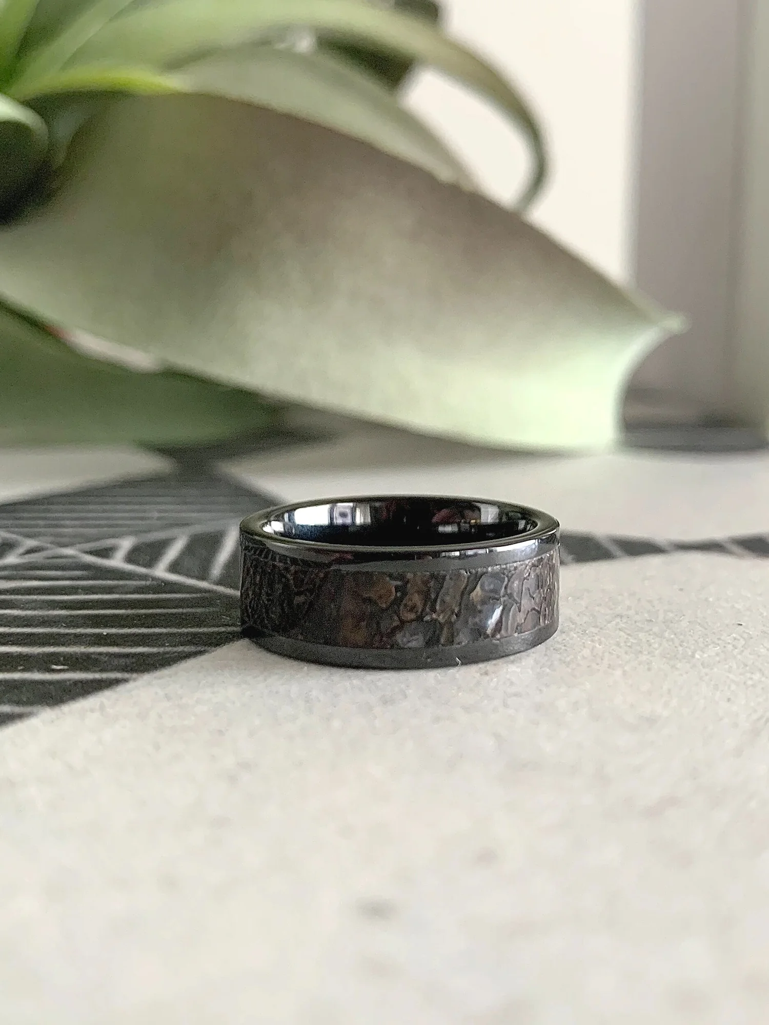 8mm Black Ceramic Dinosaur Bone Wedding Band Ooh Aah Jewelry Wedding Bands Nob Hill Shop Albuquerque Jewelry Men S Wedding Bands Ooh Aah Jewelry